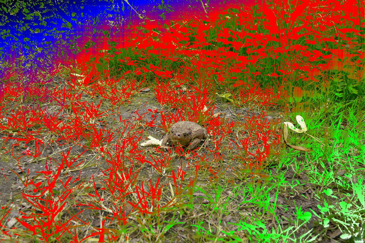 Eingebettet in die Farben des Prismas sucht eine Kröte nach Orientierung in der ungewohnten Umgebung.
