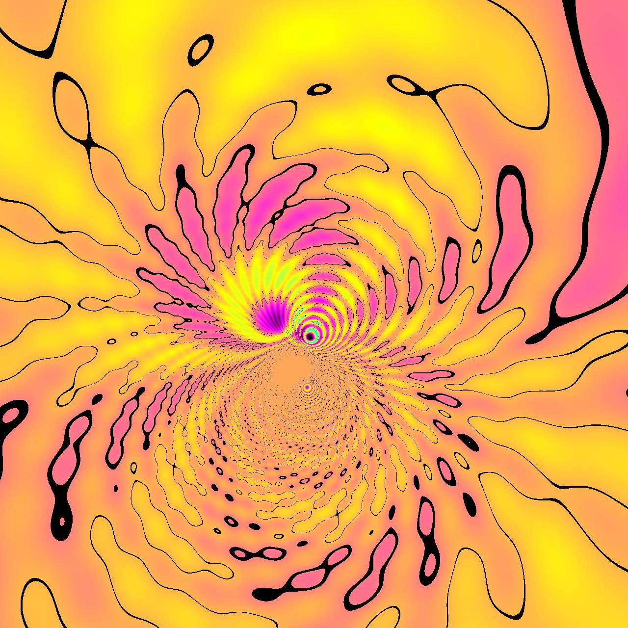 „Mandala“ entfaltet sich wie ein kaleidoskopisches Universum aus Farben und Formen. Auf der Basis von Schwarz und Weiß wächst eine lebendige Vielfalt an Tönen, die sich spiralförmig und organisch ausbreiten. Das Werk erinnert an die ornamentale Strenge und spirituelle Tiefe indischer Mandalas, bleibt dabei aber chaotisch und verspielt – ein Sinnbild für den Weg des Lebens, der selten gerade verläuft, sondern voller unerwarteter Wendungen steckt.