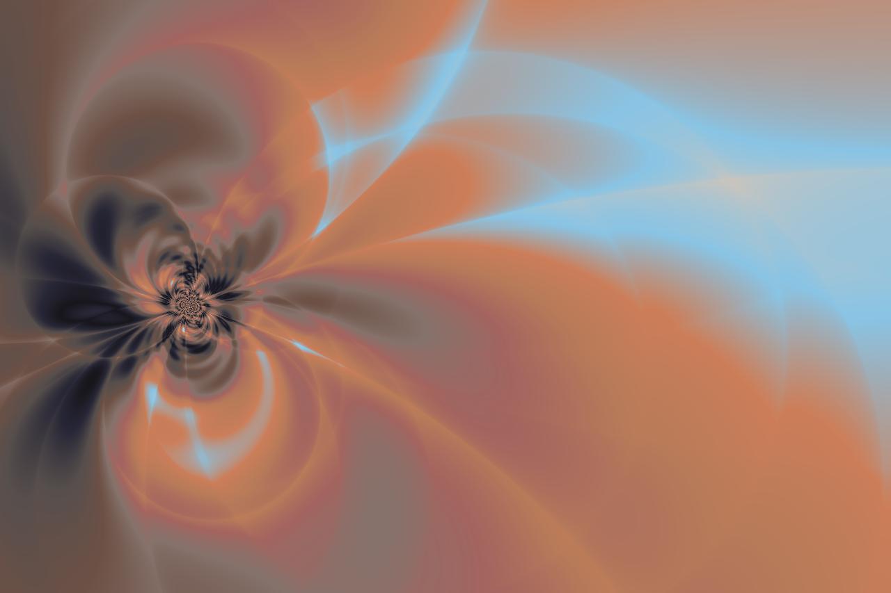 Dem Bild liegt ein Modell von Wellen auf einer Wasseroberfläche zugrunde, wie sie miteinander kommunizieren, sich gegenseitig auslöschen oder verstärken. Eine mathematische Transformation kehrt dabei das Innere nach außen und sorgt für dieses phantastische Spiel der Formen.