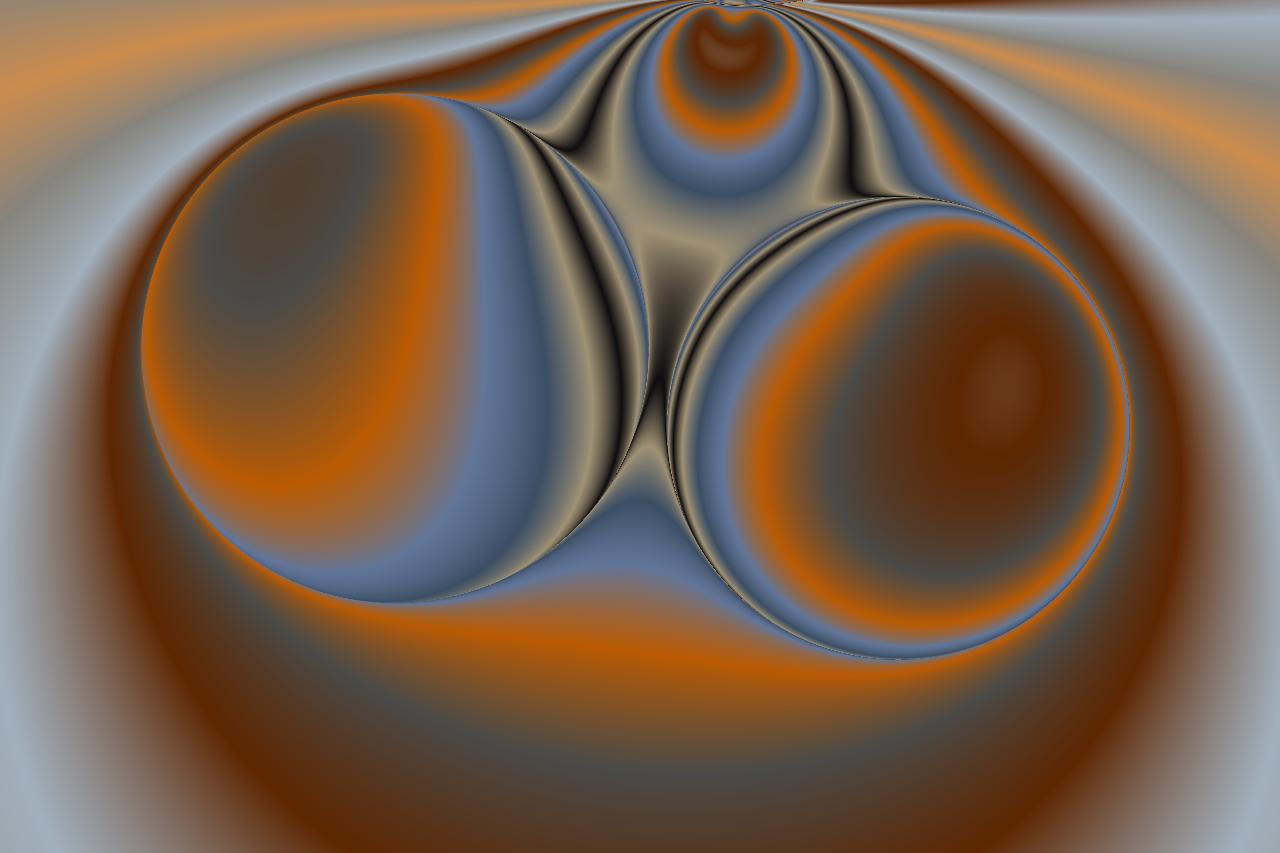 Dem Bild liegt ein Modell von Wellen auf einer Wasseroberfläche zugrunde, wie sie miteinander kommunizieren, sich gegenseitig auslöschen oder verstärken. Eine mathematische Transformation kehrt dabei das Innere nach außen und sorgt für dieses phantastische Spiel der Formen.
