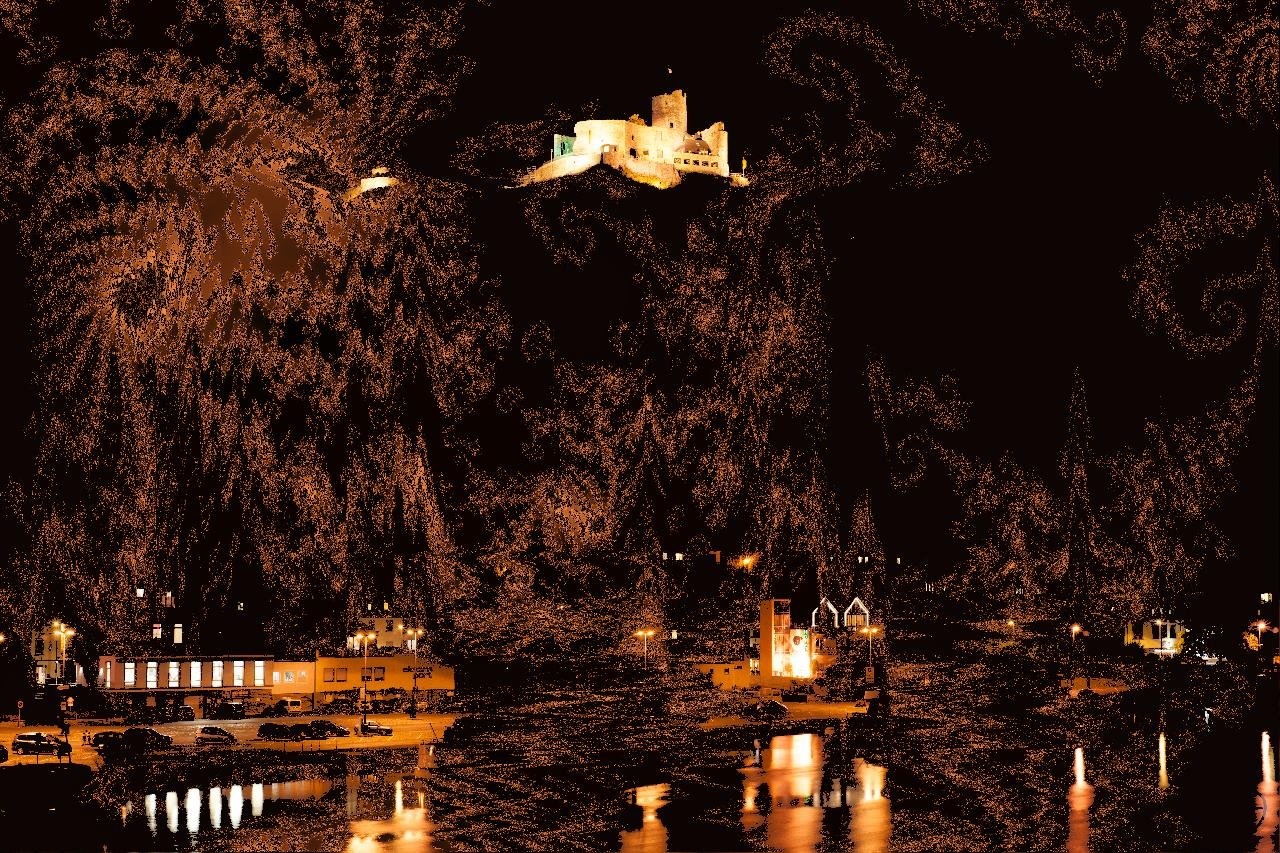 Das Bild entstand auf Grundlage einer Fotografie mit dem Titel "Trier", aufgenommen im Juni 2022, bei den GPS-Koordinaten 49 deg 44’ 53.17" N, 6 deg 38’ 56.94" E. Die Grafik verwendet die Farben der Fotografie.