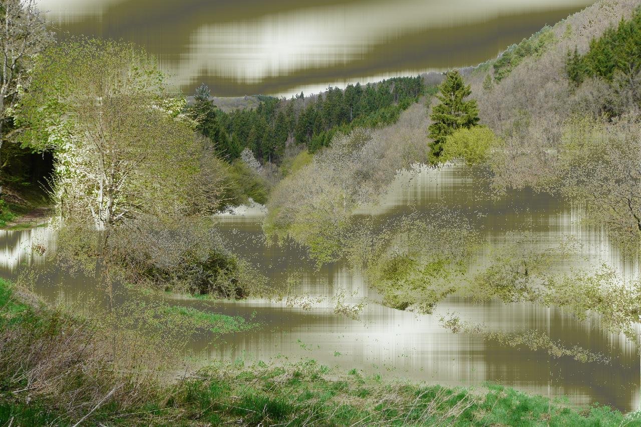 Das Bild entstand auf Grundlage einer Fotografie mit dem Titel "Dreistegen Rurwanderung", aufgenommen im April 2022, bei den GPS-Koordinaten 50 deg 33’ 8.89" N, 6 deg 12’ 56.02" E.