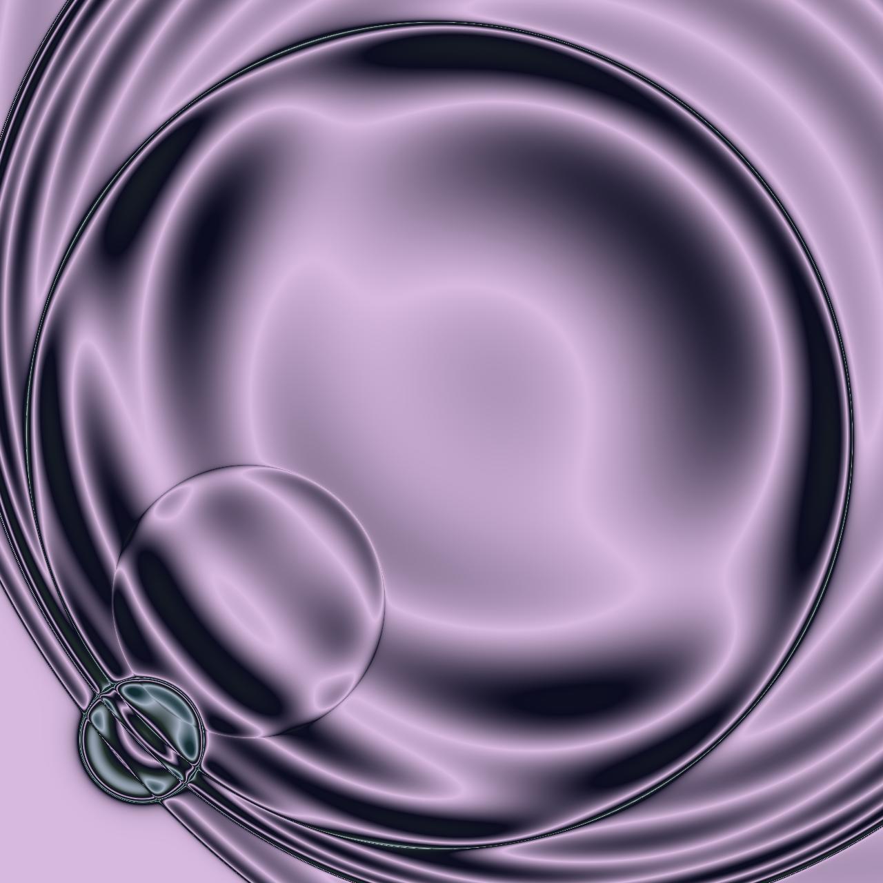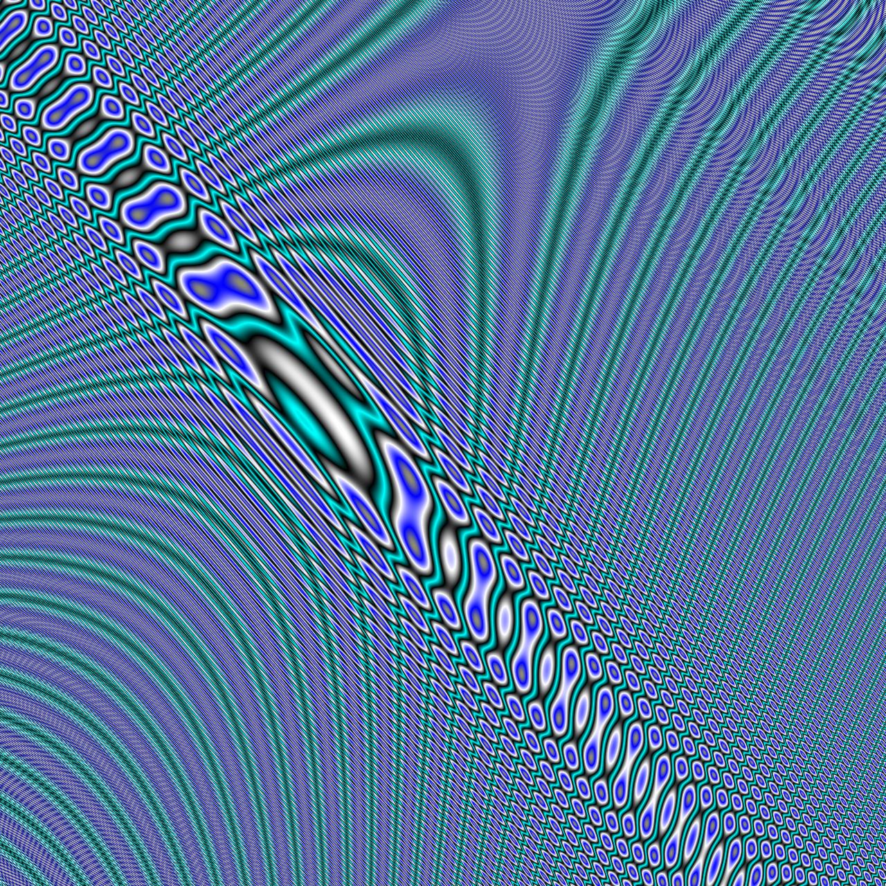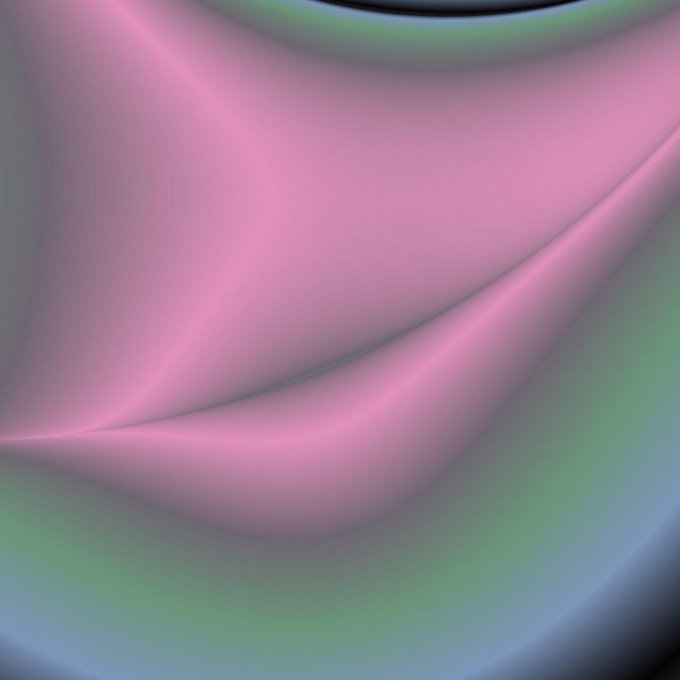 Die zufällig generierten Farben – kühle Grün- und Blautöne, schimmernde Übergänge ins Graue – umspielen diese Mitte wie energetische Felder. Sie wirken nicht chaotisch, sondern folgen einer eigenen, verborgenen Logik. Licht und Schatten gleiten sanft über die Wölbungen, wodurch Tiefe entsteht, als könne man in die Dimensionen hineingreifen.