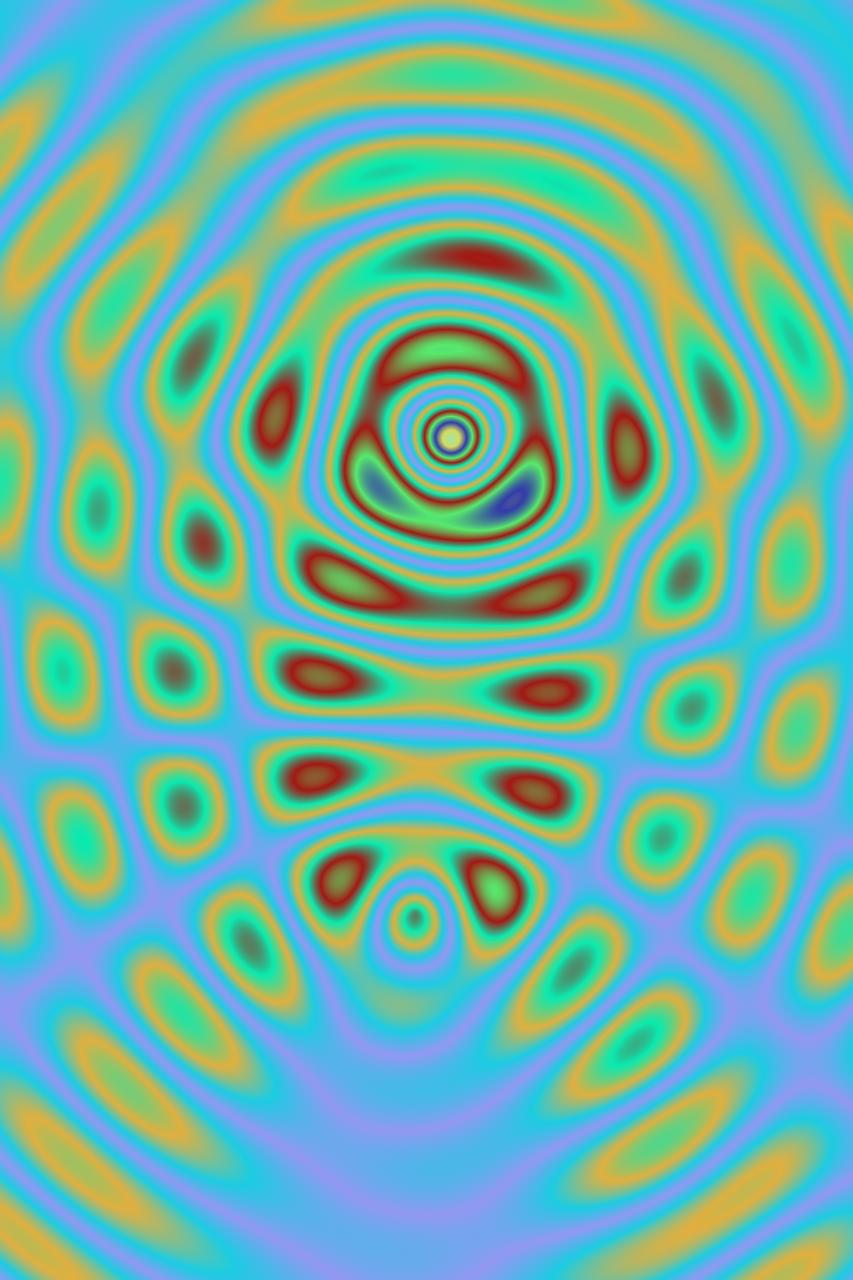 In der Grafik „Lagune“ trifft die unendliche Tiefe der Mathematik auf die lebendige Farbskala der Biologie. Das Werk basiert auf einer Julia-Menge – einem Fraktal, das durch iterative Transformationen im komplexen Zahlenraum entsteht. Diese mathematische Unendlichkeit wird hier jedoch nicht als kaltes Kalkül, sondern als organisch gewachsene Struktur präsentiert.