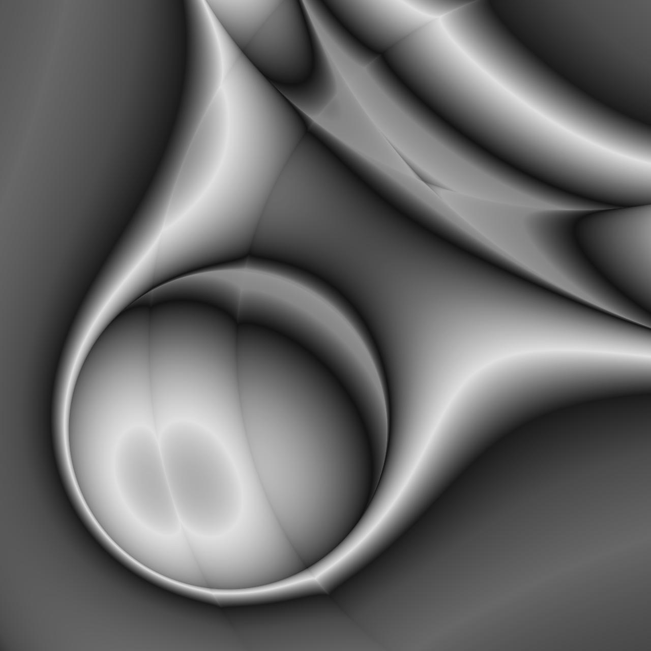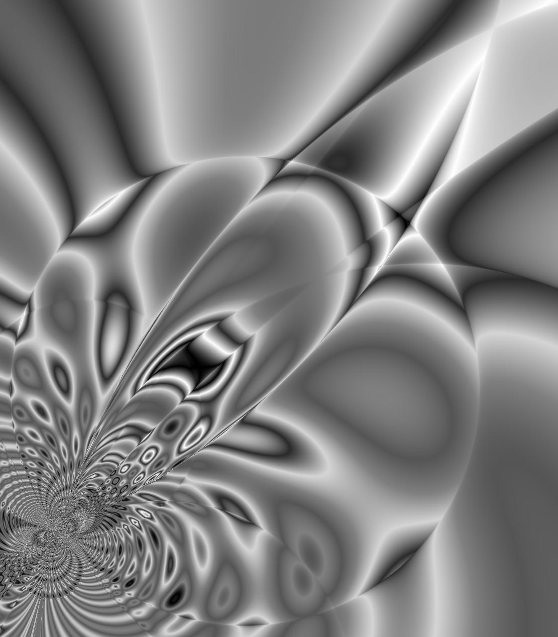 In „Silberne Resonanz“ verwandelt sich reine Mathematik in eine schwebende Landschaft aus Energie. Die grauen und silbernen Töne wirken wie verdichteter Klang, der sich in fließenden Schichten durch den Raum bewegt. Kreisförmige Muster breiten sich wellenartig aus, überlagern sich und erzeugen ein Vibrieren, das fast akustisch spürbar ist. Der Blick wird unweigerlich in die spiralförmige Tiefe gezogen, in der sich das Bild wie ein akustischer Trichter öffnet – ein Ort, an dem Frequenzen sichtbar werden.